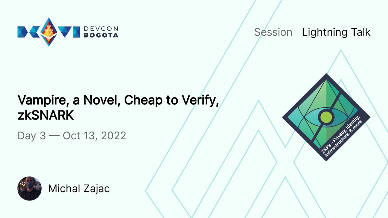 In this talk, I would like to introduce Vampire (https://eprint.iacr.org/2022/406) -- a novel zkSNARK that has the smallest communication complexity and on-chain verification cost of all known updatable zkSNARKs.