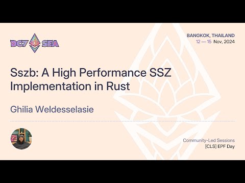 This talk goes over my EPF project for the SSZ ecosystem: - a benchmarking suite for the various rust SSZ implementations in the ecosystem to properly evaluate performance and point developers to which library they should use. - a high performance ssz implementation that's faster than existing libraries in the ecosystem