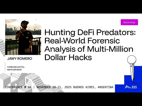 Speaker: Jawy Romero, cybersecurity, mantishield Master blockchain forensics through hands-on analysis of 2024's biggest DeFi hacks. Learn to use Tenderly, Etherscan & advanced tools to trace attacks, identify vulnerable patterns & build post-mortem reports using real $100M+ exploit cases. About DSS Every year, DSS brings together top minds in blockchain, auditing, and security — from white-hat hackers and protocol developers to academic researchers and industry leaders. The goal? To tackle the most pressing issues in DeFi security head-on — from smart contract exploits and cross-chain vulnerabilities to governance threats and beyond. https://defisecuritysummit.org/