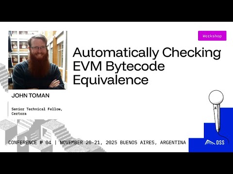 Speaker: John Toman This workshop explores practical techniques for proving semantic equivalence between smart contracts and compiler outputs. Attendees will learn how program-level reasoning can detect behavioral divergences, validate compiler optimizations, and assess LLM-generated code for functional safety. About DSS Every year, DSS brings together top minds in blockchain, auditing, and security — from white-hat hackers and protocol developers to academic researchers and industry leaders. The goal? To tackle the most pressing issues in DeFi security head-on — from smart contract exploits and cross-chain vulnerabilities to governance threats and beyond. https://defisecuritysummit.org/