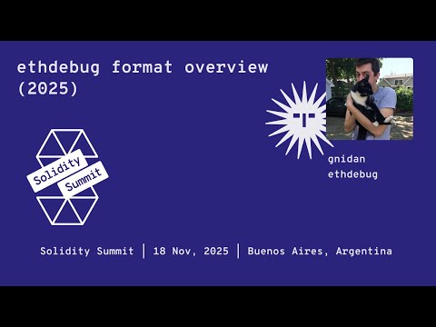 gnidan from ethdebug | Argot Collective introduced ethdebug - a debugging data format for Ethereum at Solidity Summit 2023. Since then, work has advanced on ethdebug's specification as well as its implementation by multiple debuggers and solc itself. This year, gnidan was back on stage to share how this format is being designed, what the current status is, and what you can expect next.